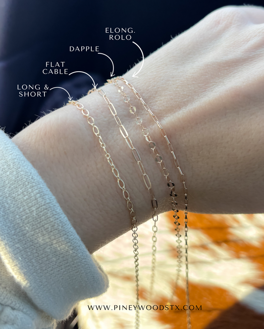 Step 1- Try on and choose from our chain options! Add a connector if you’d like.